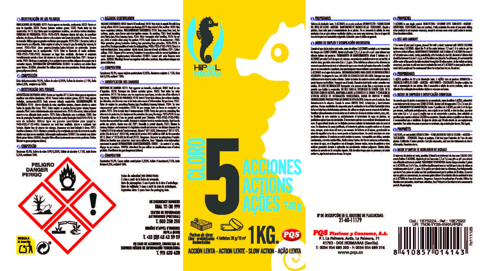 CLORO 5 ACCIONES P-20 G HIPOOL
